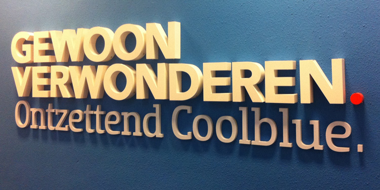 Het zal niet verbazen, maar ook die huisstijl en spreuken zijn door Coolblue zelf ontwikkeld. “We hebben wat coaching gehad van buitenaf, maar verder hebben we alles zelf gedaan inderdaad. Nadat we 9 jaar actief waren, hebben we gewoon opgeschreven wat onze essentie is. En dat is het beantwoorden van klantvragen, het meten van de resultaten, het verzamelen van feedback en het opbouwen van realiserend vermogen om dingen beter te maken. Dat maakt dat we elke dag een stukje beter worden.”