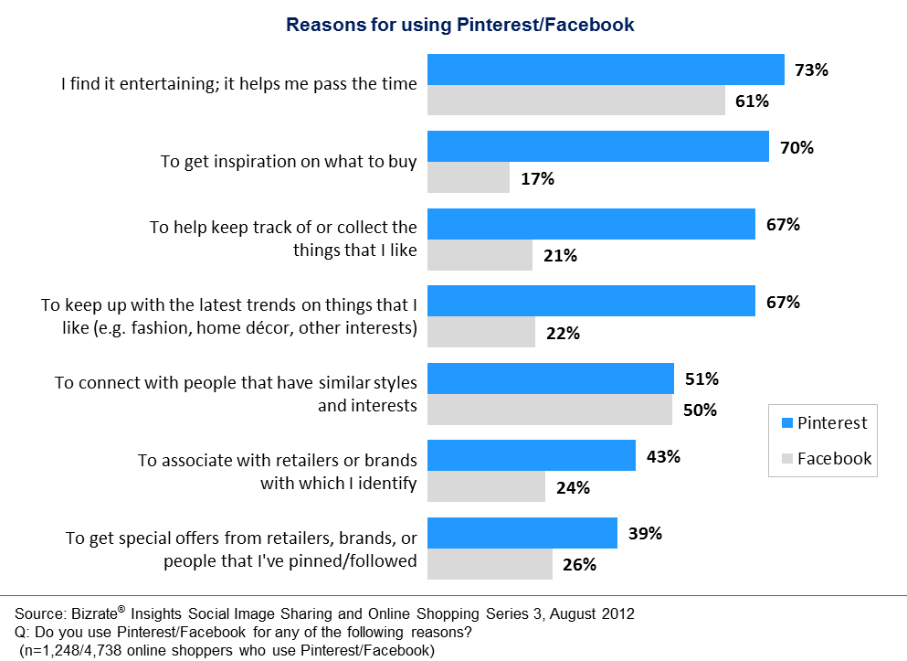 Andere redenen waarom gebruikers voor Pinterest kiezen zijn te lezen in de figuur hieronder.