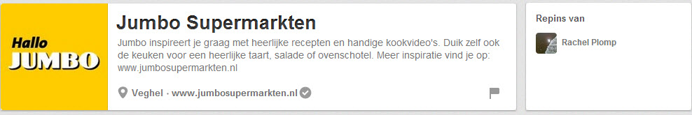 Jumbo maakt steeds meer gebruik van Pinterest. Ze weten mensen te inspireren als het om voeding gaat. Dit zal tot effect hebben dat mensen op Pinterest artikelen gaan bekijken en daarna in de winkels gaat kopen.