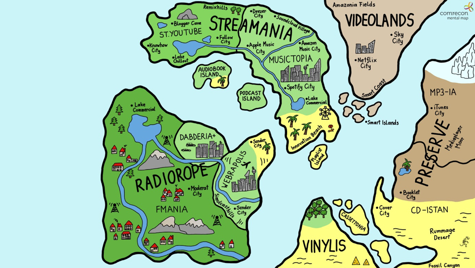 Charlotte Hager, oprichter van Comrecon Brand Navigation uit Oostenrijk, belicht de toekomst van audio in haar onderzoek Planet Audio. Haar onderzoeksgroep bestond uit 3.400 gebruikers tussen de 16 en 52 jaar. Ze heeft de uitkomsten gevisualiseerd in die fictieve landkaarten, van het verleden, het heden en de toekomst.