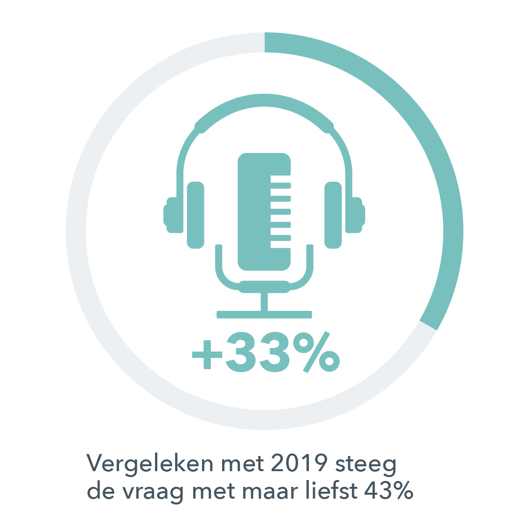 Vergeleken met 2019 steeg de vraag naar podcasts dit jaar tot nu toe met maar liefst 43 procent. Volgens Forbes zijn er momenteel 62 miljard streams per jaar in Amerika. In Nederland stijgt het aantal luisteraars ook razendsnel.