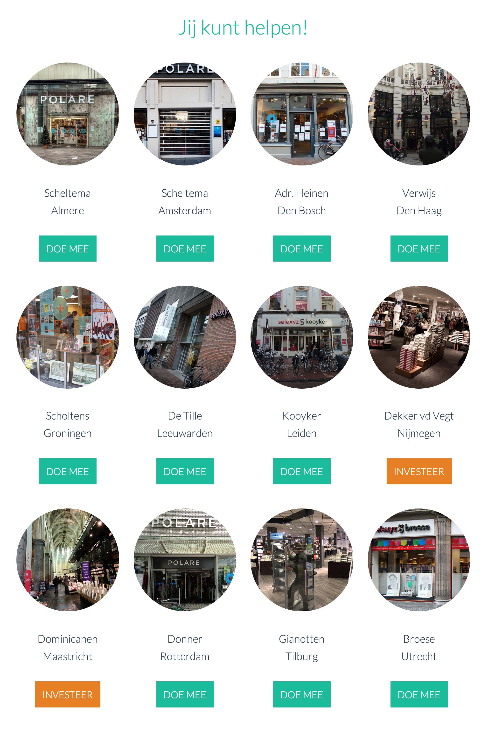 Het ‘Kwaliteitsboekhandelaren Collectief’ wordt hiermee een feit. Een groep van 12 boekondernemers en vestigingsmanagers uit Nederland die de koppen bij elkaar steken om te onderzoeken of zij de inmiddels failliete winkels van de ondergang kunnen redden. En hoe ze daarbij de steun kunnen gebruiken van lezers, schrijvers en iedereen die zich graag sterk maakt voor een divers, innovatief en gezellig winkelaanbod. Al snel komt daarom de gedachte op gebruik te maken van crowdfunding. Als bijdrage voor de financiering, maar vooral om mensen lokaal te betrekken en ambassadeurs aan zich te verbinden.
