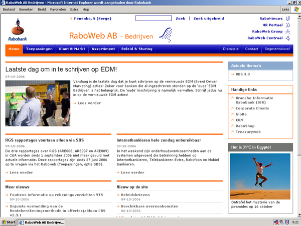 Wat we ook heel prettig vonden is dat de opdrachtgever – management van het Directoraat MKB – ons idee vanaf het begin steunde. Je moet het maar durven om in plaats van een serieuze nieuwsbrief een e-mail te sturen over het prachtige weer in Egypte. En we waren blij met de creativiteit van het FL team. De teaser-foto komt bijvoorbeeld niet uit een of andere databank, maar is een echte foto van een echte productmanager FL in de echte woestijn. 100% Consumer Generated Content dus (yes, het laatste buzz-woord is eruit:-) Net als 42 tips die we van bankmedewerkers hebben gekregen over de implementatie van FL.