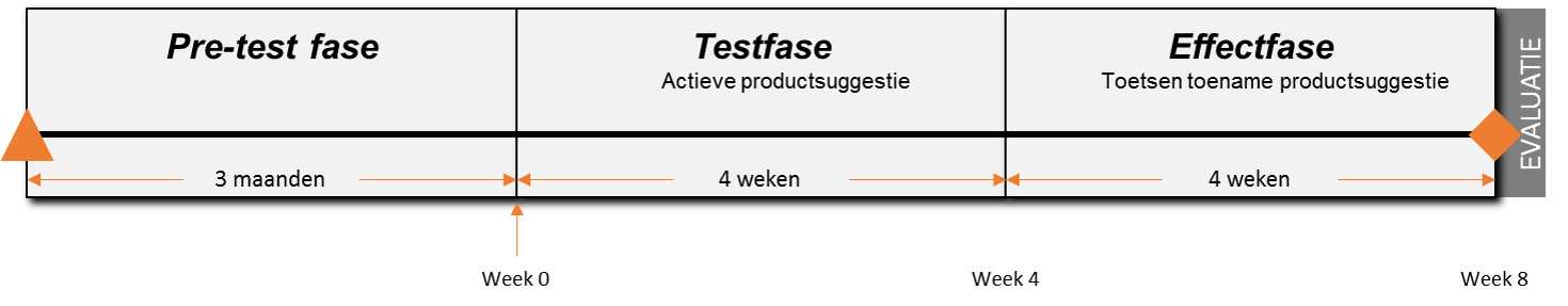 - Het niveau van verkopen van de voorgestelde productcombinatie na het stoppen van proactief suggereren in de weken 1 tot en met 4 hoger bleef in de weken 5, 6, 7 en 8 ten opzichte van de pre-testfase (< week 1).