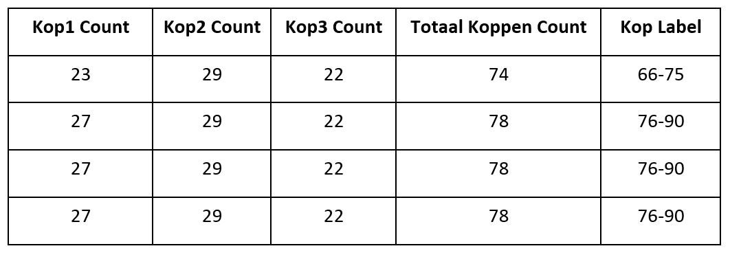 Zodra je de koppen geteld hebt, vind ik het zelf makkelijk om een label toe te voegen. Dit doe ik om het analyseren van de draaitabel (die ik hierna ga maken) makkelijker te maken.