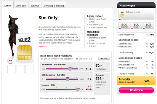 Binnen markten waarin de aanbieders in essentie hetzelfde product verkopen, is het kostenplaatje extra belangrijk. Consumenten zijn dan vooral op zoek naar eenvoudige vergelijkingen. We vinden hier de eerste reden voor de stijging van Tele2. Sinds de vorige meting bleek uit onderzoek van Tweakers.net dat Tele2 de goedkoopste aanbieder van sim only is. Tele2 adverteert hiermee op haar website. Uit onze eigen check langs de top 3 van de ranglijst hierboven, komt hetzelfde lijstje naar voren: Tele2 biedt de goedkoopste abonnementen, gevolgd door Telfort en T-Mobile.