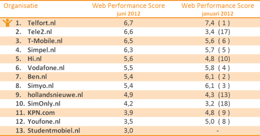 Het is inmiddels een bekend gezicht: Telfort als winnaar van onze Web Performance Scan naar sim only abonnementen. In de meting van juni eindigt Telfort voor de vijfde keer op rij bovenaan de ranglijst, al zijn de onderlinge verschillen kleiner dan ooit. Hoe weet deze website hetzelfde product steeds beter te verkopen dan de concurrentie? En waarom stijgt Tele2 ineens van de zeventiende naar de tweede plaats? Uit de onderzoeksresultaten blijkt dat de oriënterende consument op zoek is naar drie kernelementen.