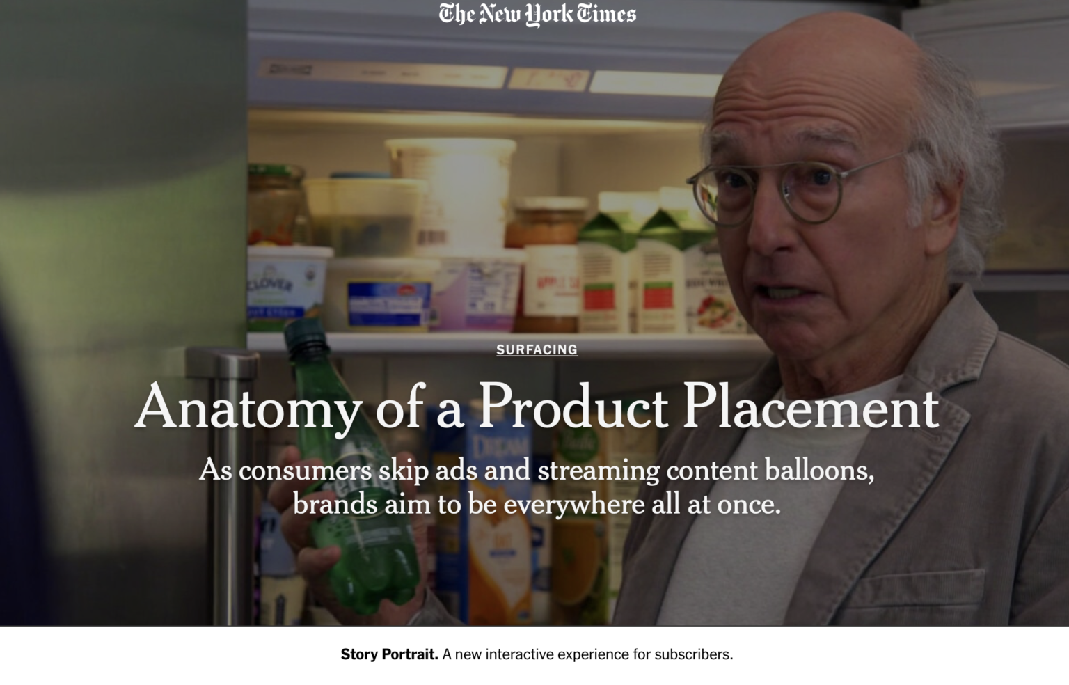 Soms lijkt het wel of dingen nooit veranderen. Inmiddels bestaat Branded Entertainment 20 jaar. Dat begon ooit met productplaatsing in tv-programma’s. Een trend die kwam overwaaien uit de VS waar de reclamewereld en Hollywood een nieuwe bron van communicatie en inkomsten zagen. En dan staat er deze week een verhaal in de NY-Times over een trend. Een trend met de naam product placement. Eigenlijk bedoelen ze te zeggen dat de opkomst van streaming heeft geleid tot een explosie in productplaatsing. Merken zoeken naar nieuwe manieren om hun producten onder de aandacht te brengen en producties zoeken creatieve manieren om kosten te compenseren. Productplaatsing is nu een bedrijfstak van $23 miljard (21,75 miljard euro), een stijging van naar schatting 14 procent sinds 2020. De NY-Times heeft er een mooi vormgegeven verhaal over geschreven waarbij zelfs de cursor voldoet aan branded vormgeving.