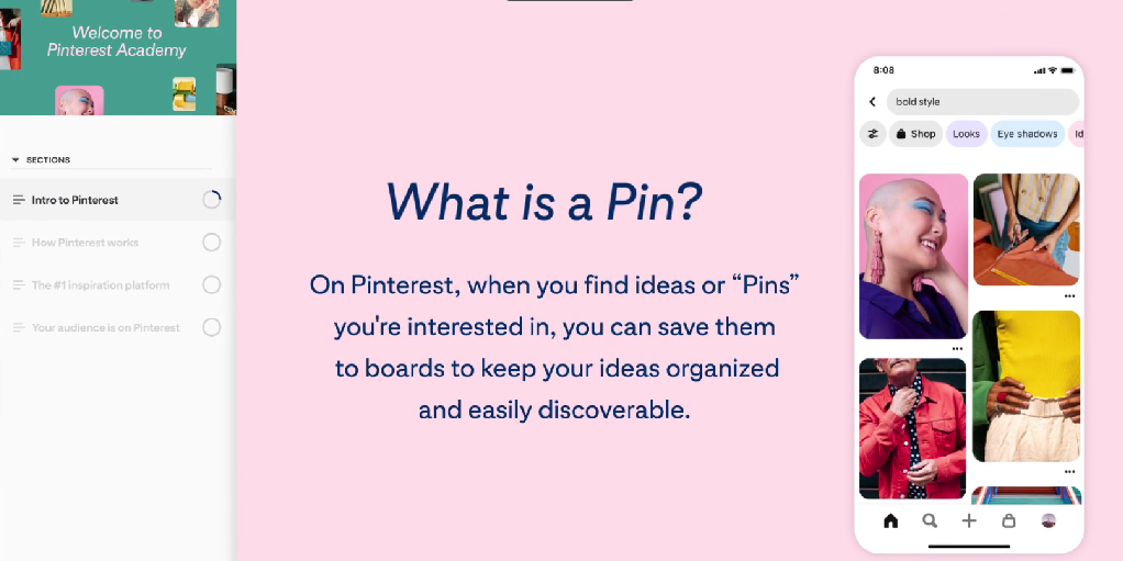 Het e-learningplatform is een nieuw en verbeterd platform dat mensen helpt om succesvol te worden op Pinterest. De eerste variant van het platform werd jaren geleden al gelanceerd, namelijk in 2019. Sindsdien is Pinterest aan de slag gegaan met de feedback van gebruikers om het platform verder te verbeteren. Zowel de inhoud van de trainingen, de manier van leren en het design van het platform zijn onder de loep genomen. Ook biedt het platform nu wel 2 keer zoveel cursussen aan als voorheen. Genoeg mogelijkheden dus om je Pinterest skills te verbeteren!