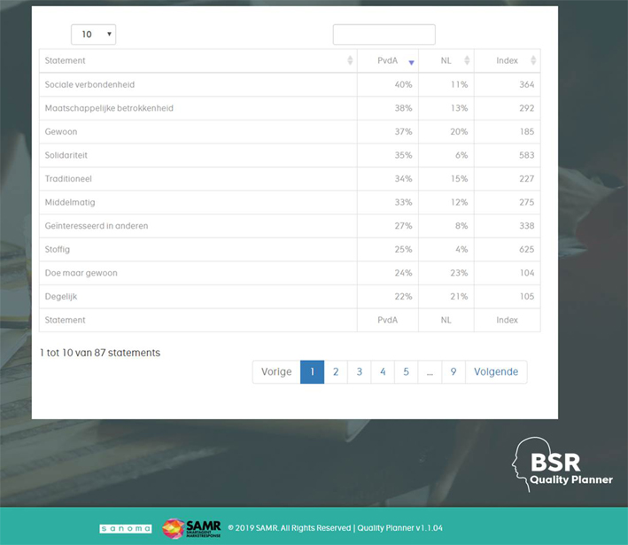 De achtergrond moet ik even uitleggen. Binnen Sanoma maken we gebruik van de BSR Quality Planner, een interactieve tool voor kwalitatieve mediaplanning. Hiervoor waren reeds 250+ merken beoordeeld door in totaal 11.000+ consumenten, aan de hand van een vragenlijst die gestoeld is op het Brand Strategy Research (BSR)-model van onderzoekbureau SAMR. Elk merk is door minimaal 120 respondenten beoordeeld. Het BSR-model gebruikt psychografische waarden om merken in te delen in verschillende segmenten.