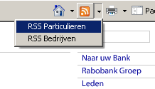 Tot vandaag! Dankzij de auto RSS-discovery functionaliteit van IE7 (die overigens ook in Firefox zit) zag ik dat de Rabobank werkt aan RSS-feeds voor bedrijven en particulieren. Op de website zelf staan de feeds nog nergens vermeld maar het is duidelijk dat ze rekening hebben gehouden met de nieuwste ontwikkelingen op internet. Welke banken volgen?