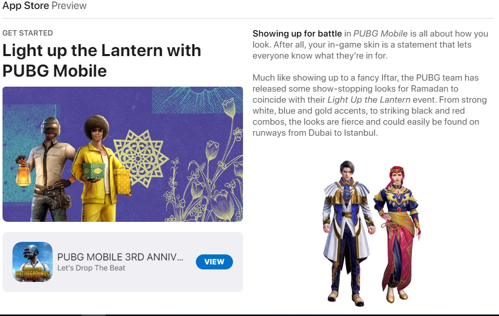 Ook in de gaming wereld zijn ze ramadan niet vergeten. In de populaire game PlayerUnknowns Battlegrounds, of PUBG kan je nu ramadan skins kopen.