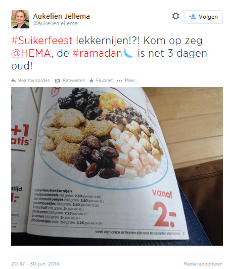 Op het kantoor bij HEMA kwamen ze dit jaar wel erg vroeg met de Suikerfeesttips. De Ramadan was nog geen drie dagen bezig en de folder van HEMA stond al vol met lekkernijen.