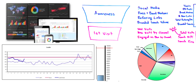 Praktisch gezien start ik altijd met KPI’s data die bijna bij elke organisatie relevant zijn en waarvan de databronnen digitaal beschikbaar zijn en snel te koppelen aan bijvoorbeeld een Klipfolio dashboard. Dnek aan: bezoekcijfers (aantal), boekingen / transactiecijfers (aantal), conversiecijfers of de gemiddeld bezoeksduur.