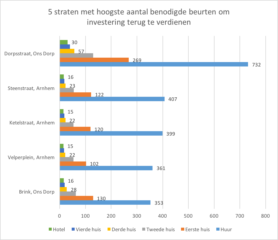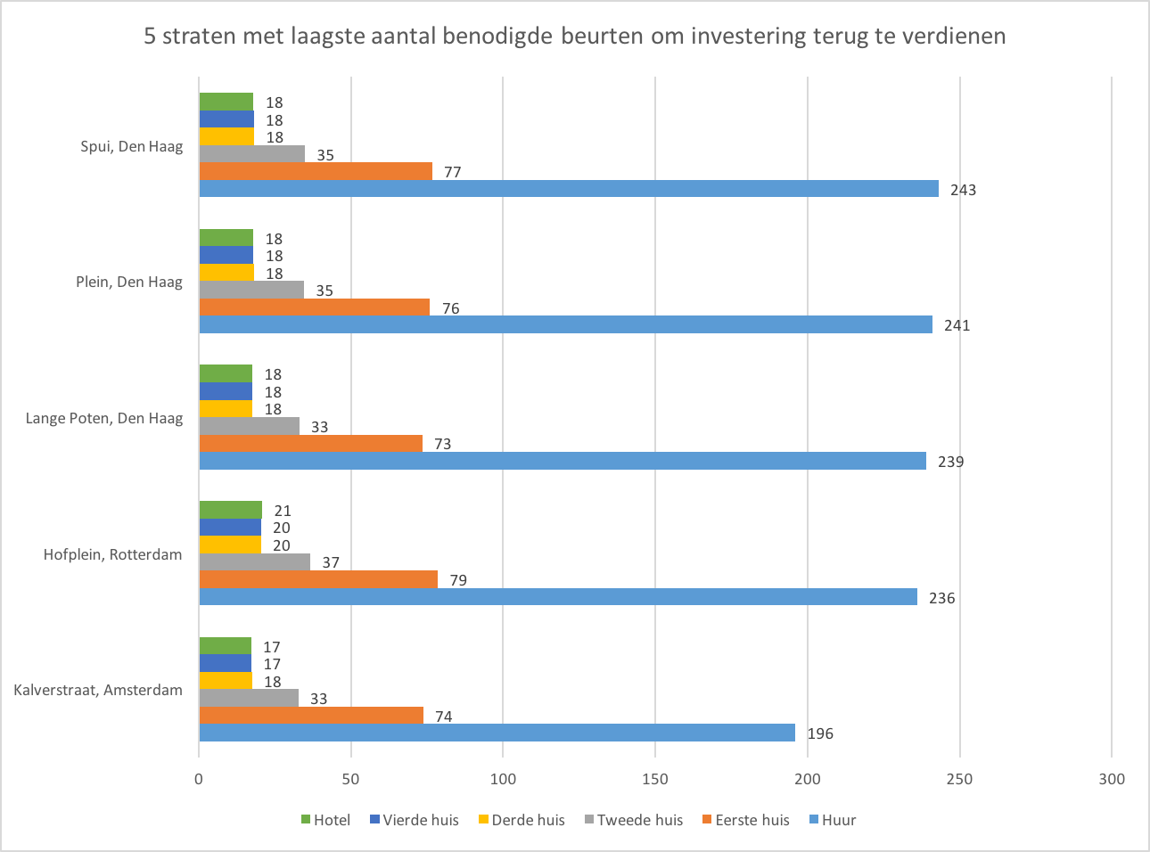 In onderstaande grafiek zie je in één oogopslag met welke straat je je investering snel terug hebt.