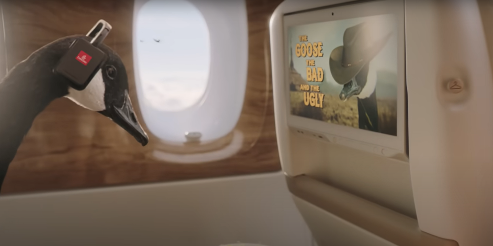Samen met Emirates’ passagiers kiest Gerry the Goose voor een ‘Fly Better’ experience in deze nieuwe campagne. Daarbij lijkt het merk zich flink te laten inspireren door Air New Zealand, dat vijf jaar geleden al met dit concept kwam.