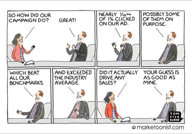 Voor marketeers wordt het waarschijnlijk pas echt interessant als uit analytics blijkt dat 1.000 mensen iets hebben gelezen of als 100 mensen ergens een like achterlaten. Marketeers worden gelukkig van 5.000 hartjes op Instagram. Ongeacht of deze mensen ooit iets bij je gaan kopen, dat weet je immers niet. Het zijn allemaal vormen van respons die voelen als een schouderklopje. Ze geven het idee dat je echt ergens aan werkt.