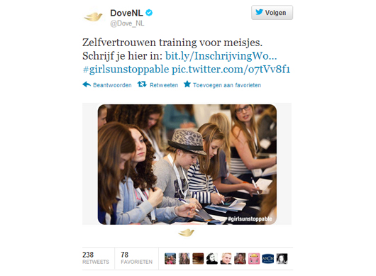 Toch geeft Roos toe: het zijn niet alléén maar de mensen die een merk vleugels geven. “Eerlijk is eerlijk: daarin heb ik mijn puristische mening bijgesteld. Ik was altijd tegen het gebruik van logo’s op Twitter. Waarom zou je met een logo gaan praten? Maar ik heb nu ervaren dat een campagne ook vanuit een logo succesvol kan zijn. Dove is nu een van de meest gevolgde merken op Twitter. Fans volgen het merk én de medewerkers. Dat is voor mij de grootste les geweest bij Social Embassy tot nu toe: het is niet een kwestie van of-of. Juist de combinatie van merkgedreven campagnes en echte mensen is krachtig.”