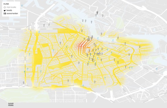 Het tweede voorbeeld was een door KPMG ontwikkelde event/crowdmanagement-applicatie die is gebruikt tijdens de afgelopen Gay Pride en Koninginnedag: op basis van het aantal mobiele telefoons wordt op een kaart van Amsterdam gevisualiseerd waar de meeste mensen zich ophouden en in welke richting zij zich bewegen: een zeer bruikbare tool voor veiligheidsdiensten en politie om op tijd overcrowding te signaleren en voor de efficiëntere inzet van personeel en middelen. Daarnaast kan de koppeling met diensten als Partyflock of Twitter interessante gebeurtenissen in kaart brengen en automatisch het ondersheid maken tussen optredens en ongelukken.