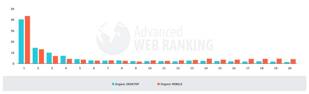 Gemiddelde CTR per positie in Google (Bron: Advanced Web Ranking)