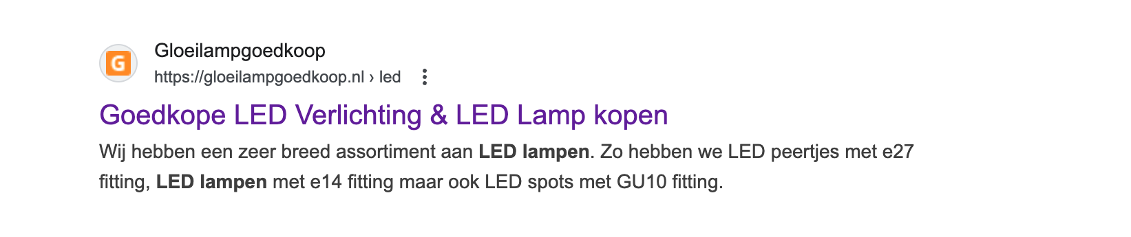 Je hebt ook de mogelijkheid om het uiterlijk van de pagina in de zoekresultaten van Google aan te passen door de zogenaamde meta title en meta description te veranderen. In de title verwerk je in het kort het onderwerp van de pagina en in de description geef je een beschrijving van de informatie op de pagina. Afgelopen jaar hebben we de waarde van ‘eigen ingevulde’ Meta Description wel zien afnemen, daar waar de zoekmachine steeds vaker in staat is een relevante alinea of informatie van de pagina zelf te tonen.