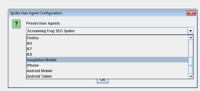 Hoe kun jij bij Screaming Frog Googlebot-Mobile instellen?