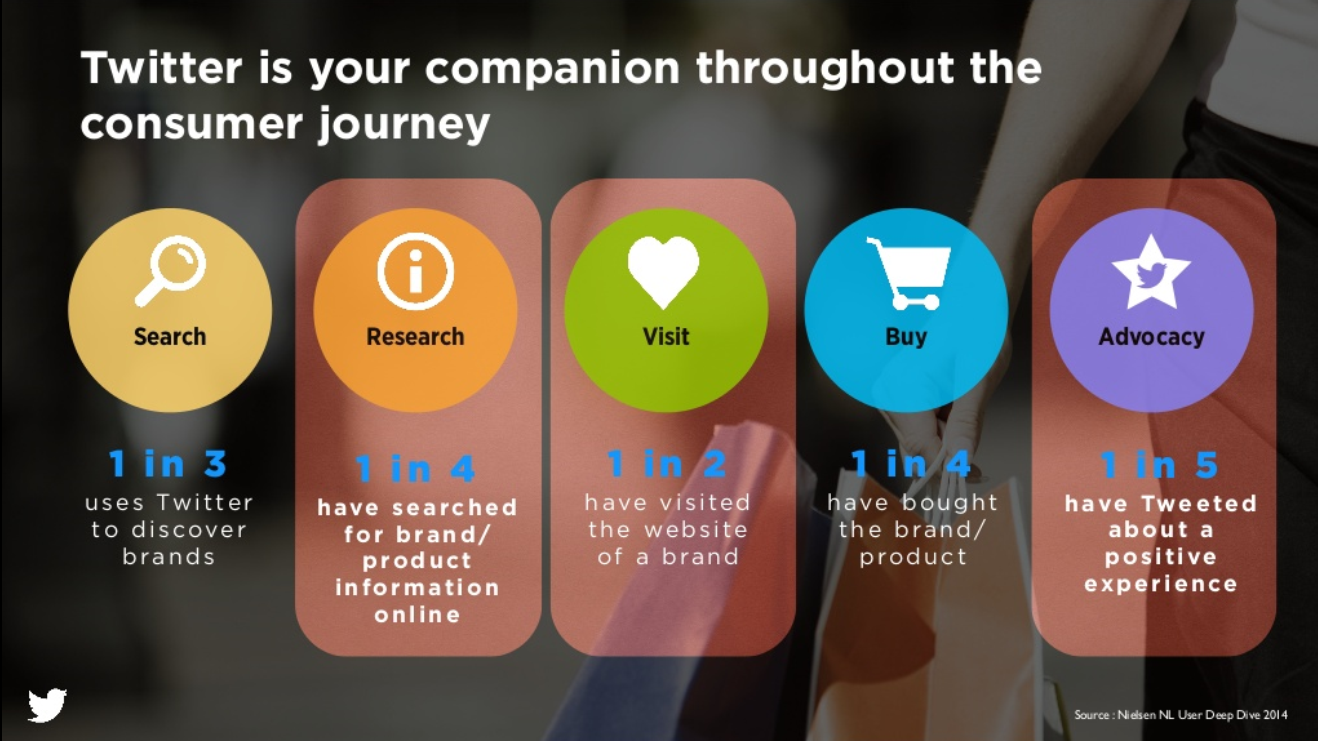 “De purchase funnel vindt plaats op Twitter”, zei Suzanne Ekel tijdens de Webwinkel Vakdagen 2015. Van awareness tot aankoopproces, alles wordt gedeeld op Twitter en is dus ook te beïnvloeden. Maar hoe zorg je dat Twitterconversaties met je klant leiden tot transacties? Je leert het op 24 september tijdens Shopping Today.