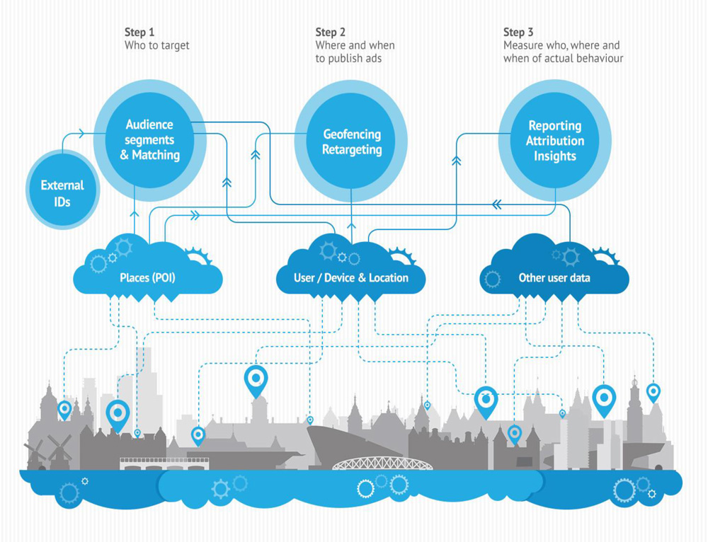 Location-based advertising vereist niet meer per se het installeren van een dedicated app die je trackt, maar maakt dus gretig gebruik van alle eerder genoemde gratis apps die je op dat moment open hebt staan. Dat is dan meteen wel een vereiste: de apps moeten actief zijn. Een ander nadeel is dat je met die apps geen pushberichten mag sturen. Oplossing? Het inzetten van tailored ads, waarbij de CTR overigens vele malen hoger is als je er iets als “minder 300 meter van je vandaan” in stopt – een klik opent Maps, dat je zo naar het point of sale leidt.