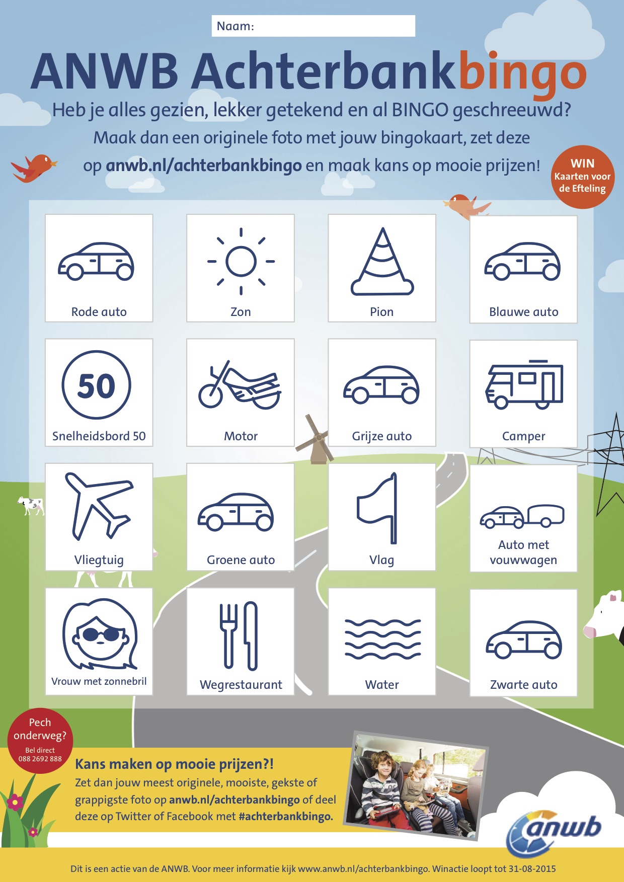 “De ‘achterbankbingo’ is ook leuk. In 1996 stond dit spel eenmalig in de Kampeer en Caravan Kampioen (KCK), mensen speelden dat op weg naar vakantie. We wilden met hetzelfde thema iets verzinnen dat elke ANWB-portal zou raken en hebben die bingo daarom nieuw leven ingeblazen. Met alle portals hebben we er aandacht aangegeven en contact gezocht met andere media zoals Ouders van Nu, de radio, noem maar op.”