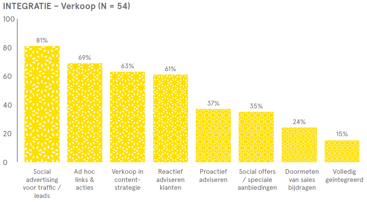 - Minder focus op verkoop, meer integratie. De merken uit het onderzoek zetten minder vaak dan vorig jaar in op verkoop via social media, maar dat gebeurt wel met een geïntegreerder aanpak.