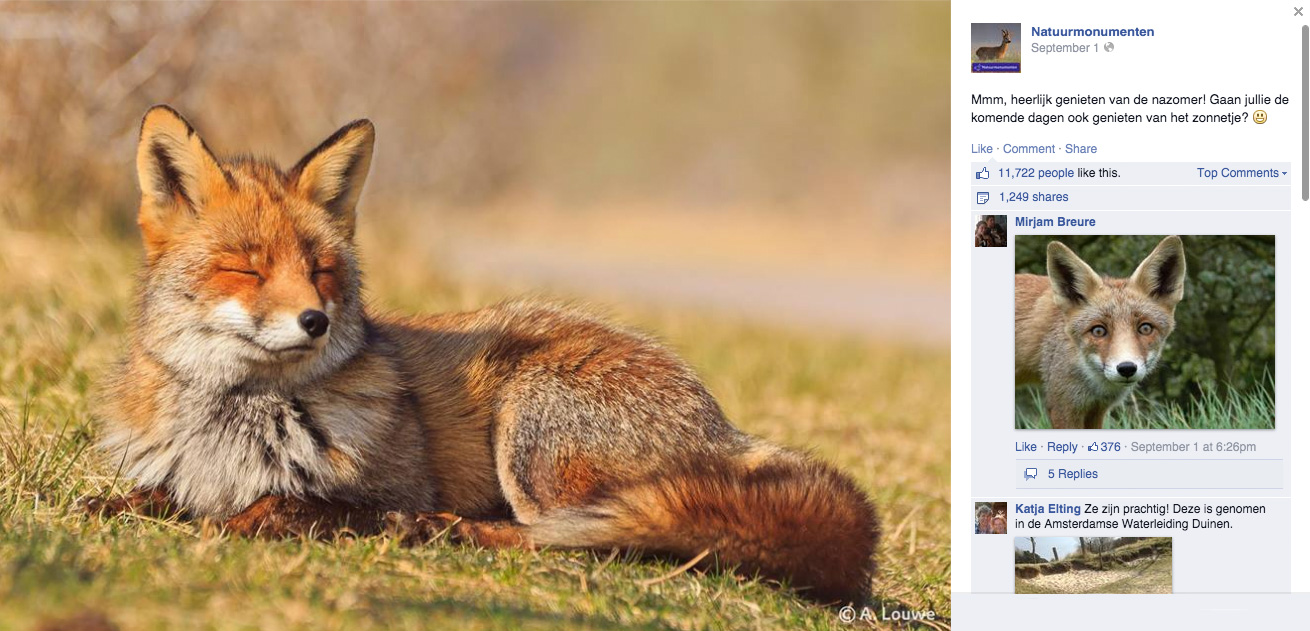 Maar de resultaten zijn in onze ogen een indicator van een veel belangrijkere ontwikkeling die Natuurmonumenten doormaakt. Met hun socialmedia-inzet bereiken ze inmiddels zo’n 5 keer meer mensen dan via hun website. Het hoge engagement zit in de emotionele beleving die ze in hun contentstrategie weten te brengen en de interesse voor de natuur die ze daarmee weten te wekken. Ze ontwikkelen die emotionele betrokkenheid bij de bron en heel lokaal, door bijvoorbeeld 70 boswachters actief te laten twitteren, die met elkaar een publiek bereiken van meer dan 60.000 volgers.