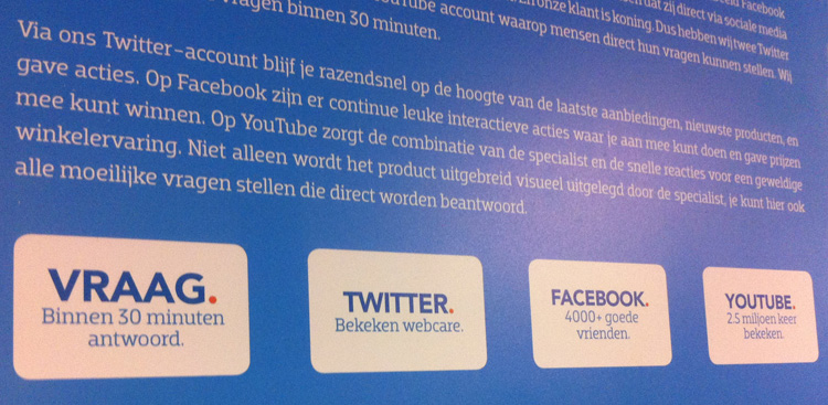 Dat is een hele onderneming! Zo heeft de Social Hub van KPN inmiddels een eigen shop, waarbij iedere afdeling in Nederland een scherm kan bestellen waarop 24/7 het social report draait van het product waarvoor de desbetreffende afdeling verantwoordelijk is.
