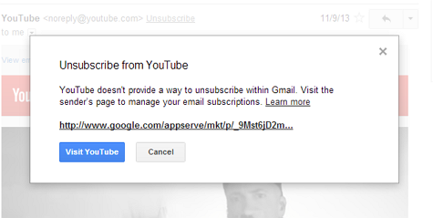 Het Amerikaanse blog Zettasphere laat zien dat er nog een alternatieve afmeldflow is. Hierbij wordt een voorbeeld van YouTube aangehaald. Wellicht komt het omdat YouTube net als Gmail tot de Google-familie behoort. Aan de andere kant valt het voor te stellen dat deze optie er straks ook komt voor andere vertrouwde verzenders. Een voordeel hierbij is dat de dialoog gehandhaafd blijft.