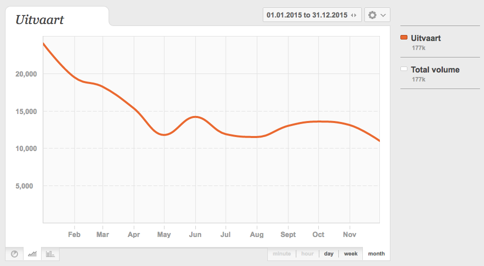 Door je klanten op een lijst te zetten, kun je terug naar stap 1 en nagaan hoe vaak je klanten iets over de branche hebben gezegd. In eerste instantie kun je de klanten als groep analyseren en zien wanneer ze als groep iets zeggen over de branche. Zo kun je bijvoorbeeld zien wanneer gedurende het jaar over je branche gesproken wordt door je klanten. Een voorbeeld van berichten over de gehele uitvaartbranche: