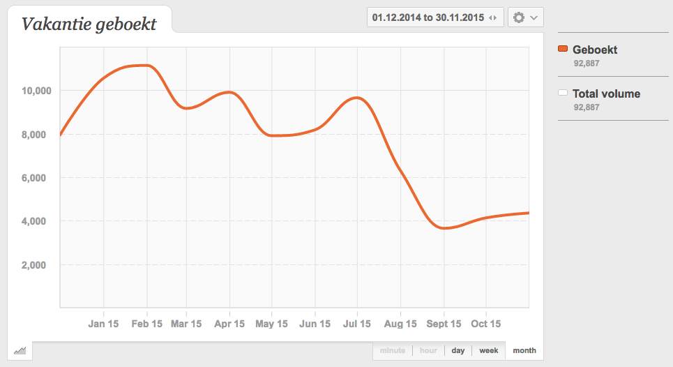 Als je een grote groep klanten hebt, kan dit type onderzoek zeker aanvullend zijn op bestaand marktonderzoek. Verder inzoomen op de data is ook relatief eenvoudig. Kijk bijvoorbeeld wanneer je klanten praten over het ‘boeken’ van een vakantie en wanneer ze uiteindelijk over ‘op vakantie’ gaan praten. Zo krijg je op een eenvoudige manier antwoord op de vraag hoe ver van tevoren mensen een vakantie boeken.