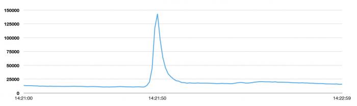 Gemiddeld worden er dagelijks 5.700 tweets per seconde verstuurd. Op zaterdag 3 augustus werd een nieuw recordaantal tweets per seconde verstuurd: 143.199 TPS. De piek was het gevolg van het TV-programma Castle in the Sky dat in Japan werd uitgezonden. Deze spike was ongeveer 25 keer hoger dan het 'normale' gebruik.