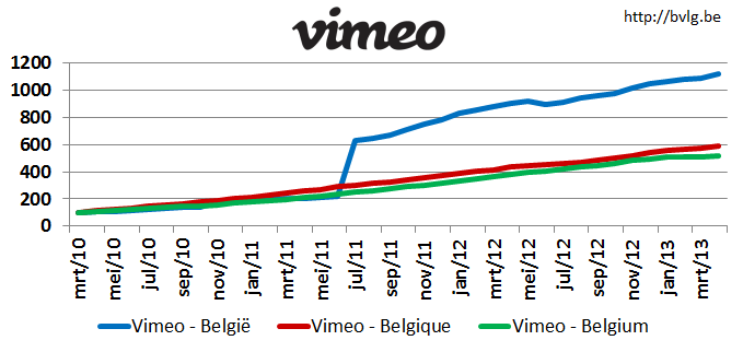 Vimeo videos for Belgium : 16.900, een stijging van 3% ten opzichte van vorige maand, een stijging van 37% ten opzichte van vorig jaar