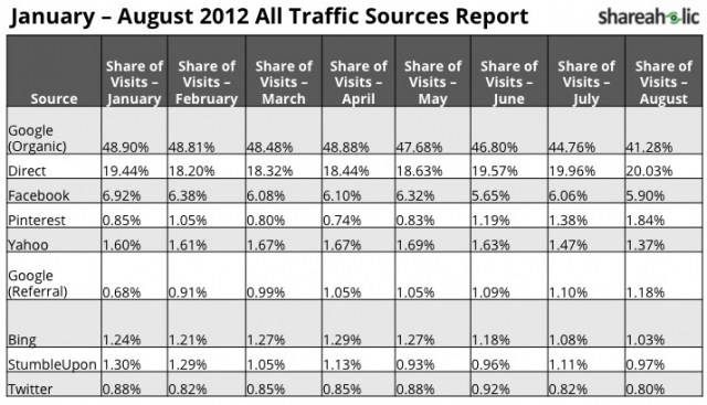 Wel stijgen de bezoekcijfers van Pinterest in de VS harder. In augustus bezochten 23,5 miljoen Amerikanen de website van het fotonetwerk. Volgens cijfers van Shareaholic is Pinterst nu een grotere bron van verkeer dan Twitter maar sinds kort ook Yahoo.