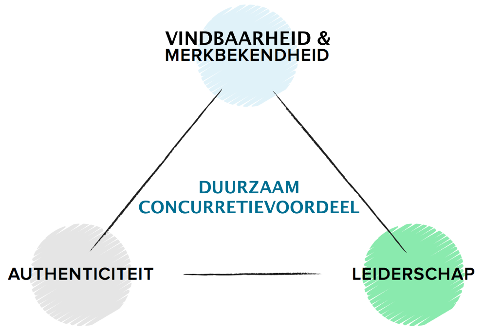 Zorg dat je op de sociale platformen die door jouw klanten gebruikt worden, vindbaar bent, toon leiderschap en laat op een authentieke manier zien waar je voor staat; dan komt het duurzaam concurrentievoordeel vanzelf.