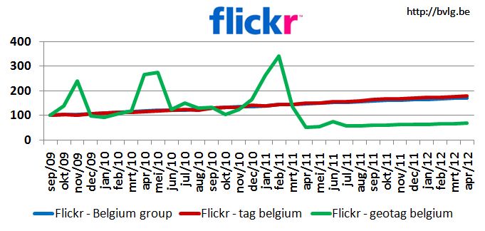 Deze cijfers geven op zichzelf niet aan hoeveel personen uit België Flickr gebruiken. Door dezelfde zoekopdrachten telkens te herhalen, zijn ze wel indicatoren van de groei van het gebruik van Flickr in België. De opgevolgde indicatoren geven sinds april 2011 een stabiele evolutie aan.