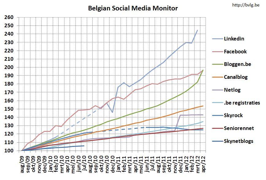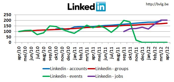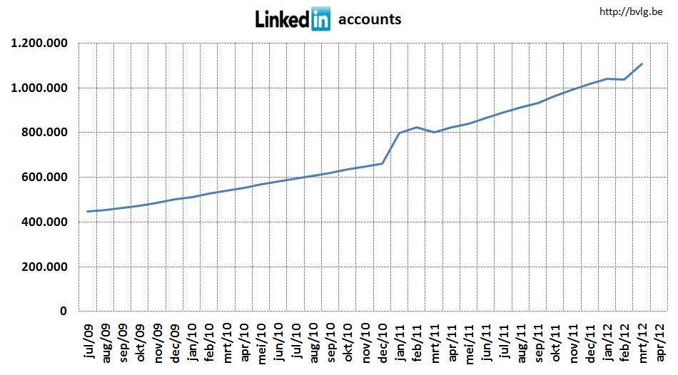 Linkedin profiles : voor maart 2012 1.107.549 Linkedin profiles voor Belgium, geen info voor april 2012