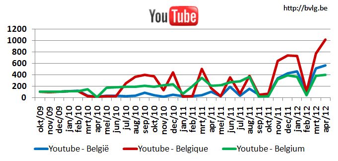 Youtube videos for Belgium : 647.000, een stijging van 4% ten opzichte van vorige maand, een onrealistische stijging van 94% ten opzichte van vorig jaar
