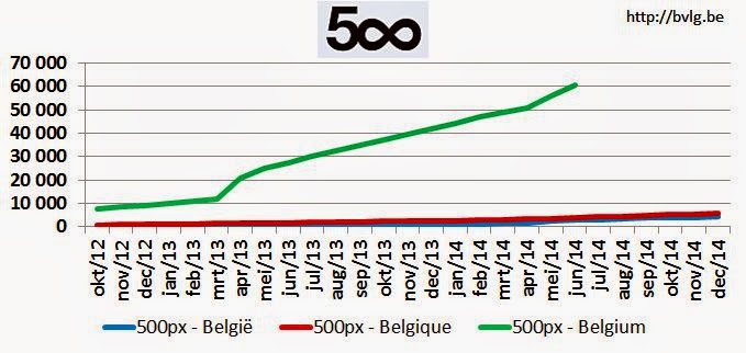 Door het vermeende gebrek van visie bij Flickr door het Yahoo-management hebben een aantal Flickr-gebruikers de overstap gemaakt naar 500px. Die site biedt gelukkig ook info aan over het aantal foto’s voor zoektermen. De cijfers tonen aan dat 500px duidelijk nog het (zeer) kleine broertje blijft naast Flickr.
