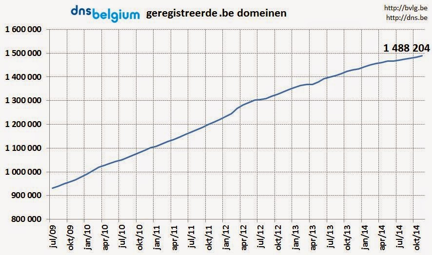 Eind november 2014 waren er 1.488.709 geregistreerde .be domeinen, een zeer lichte stijging van minder dan 1 procent ten opzichte van vorige maand, een stijging van 4 procent ten opzichte van vorig jaar.