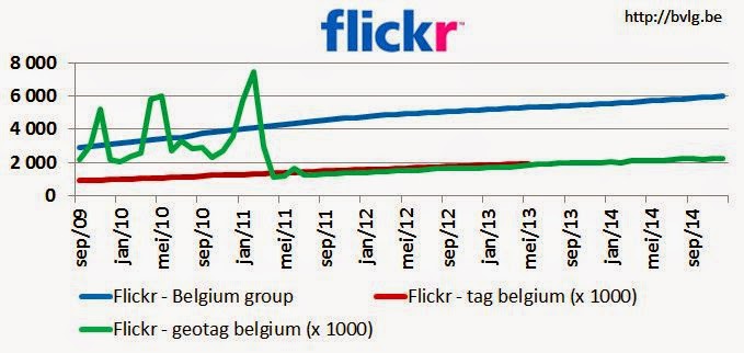 Deze cijfers geven op zichzelf niet aan hoeveel personen uit België Flickr gebruiken. Door dezelfde zoekopdrachten steeds te herhalen, zijn ze wel indicatoren van de groei van het gebruik van Flickr in België. De opgevolgde indicatoren geven sinds april 2011 een stabiele evolutie aan. In december 2012 was er heel wat te doen rond de nieuwe gebruiksvoorwaarden van Instagram, wat sommige er toe bracht opnieuw over te stappen naar Flickr, althans naar eigen zeggen. In de bovenstaande cijfers is dit echter nog niet terug te vinden. De vernieuwde aanpak van Flickr heeft evenmin al impact op de opgevolgde indicatoren.