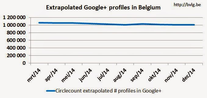 CircleCount – Population rate per country wordt voor een heleboel landen, waaronder België, een extrapolatie gemaakt van het aantal Google+ users in het land. België staat op de 37ste plaats met 1.003.028 gebruikers, een (onverklaarbare) daling van 1 procent ten opzichte van vorige maand.
