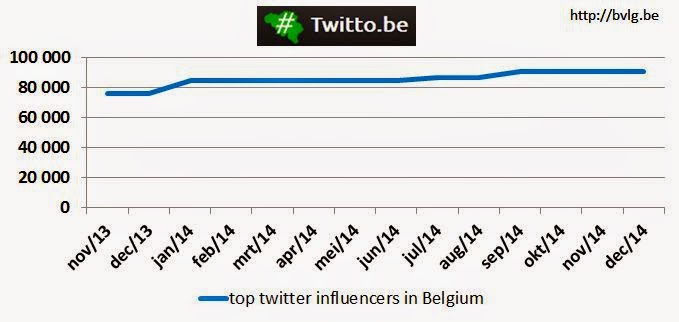 Twitto.be is een site die de top Twitter influencers in Belgium by topic, location and language toont. Begin oktober 2014 waren er 90.685 Twitter-influencers, een zeer lichte daling ten opzichte van vorige maand, een stijging van 20 procent ten opzichte van vorig jaar.