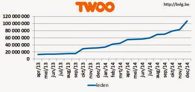 • 107.413.808 leden, een stijging van 29 procent percent ten opzichte van vorige maand, een stevige stijging van 238 procent ten opzichte van vorig jaar