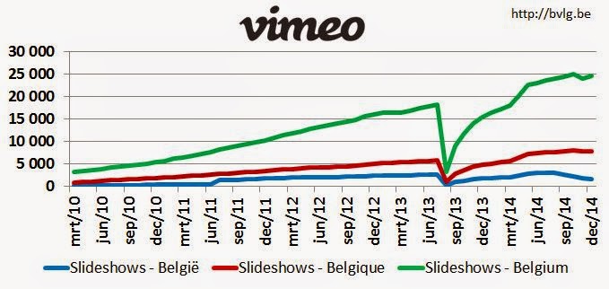 • Vimeo videos for Belgie: 1.717, een daling van 4 procent ten opzichte van vorige maand, een daling van 4 procent ten opzichte van vorig jaar