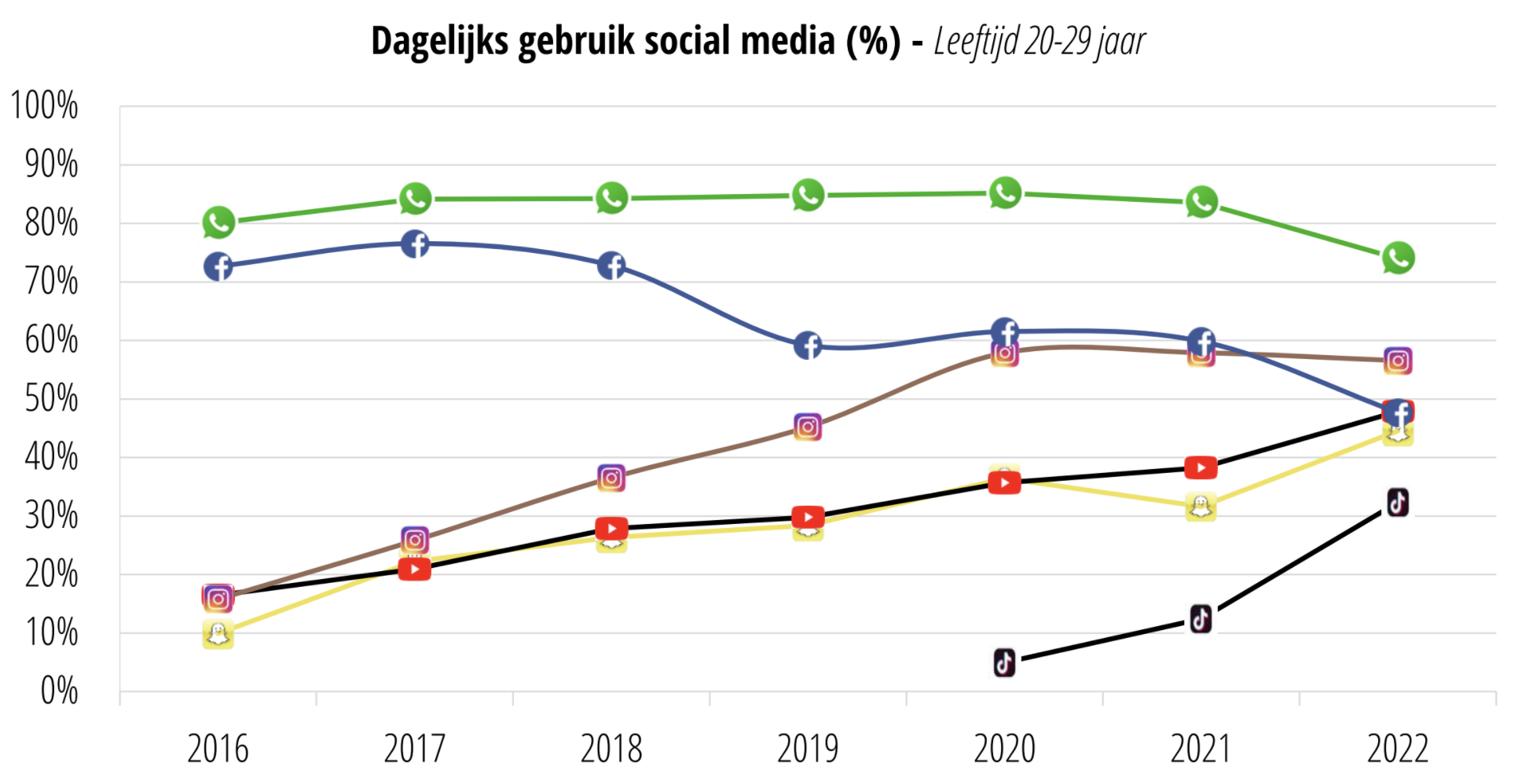 Social media in Nederland 2022: WhatsApp minder intensief gebruikt, opmars TikTok zet door